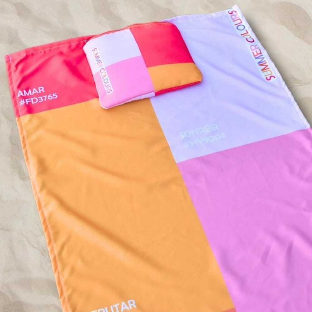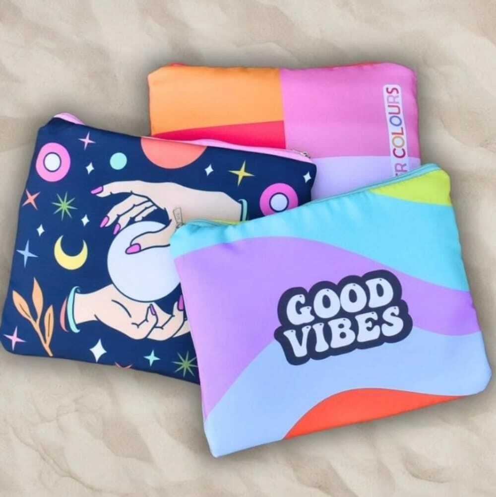 Juego de neceser con aislante en el interior y de tela impermeable + lona en tela tropical. Lona: Alto: 1,50cm-Ancho: 80cm Neceser: Alto: 23cm-Ancho: 27cm